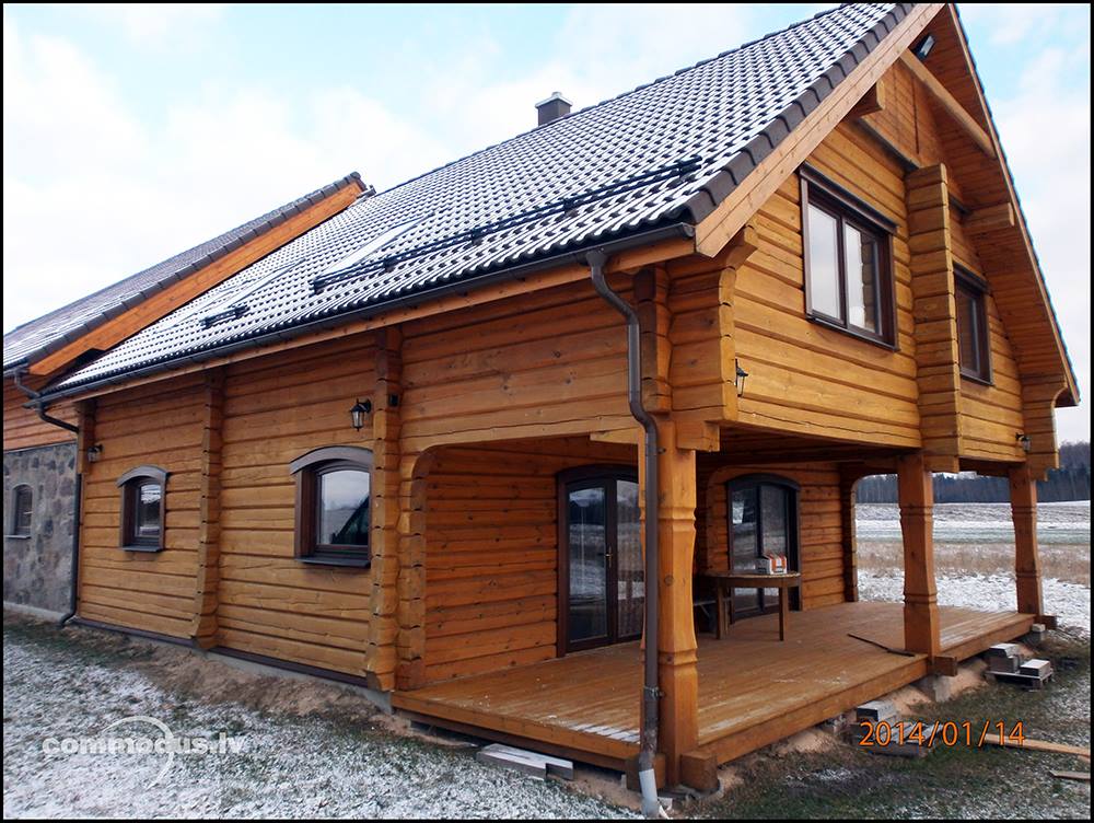 1.stāvā tika izlīdzināta un iztīrīta pamatne, ieklāta kondensāta plēve, 10 cm putuplasta siltumizolācija, ieklāta folija un armatūra, pie kuras ar savilcēm un ar soli 10 cm 5 loki pie ārsienām un ar soli 20 cm telpas iekšpusē, tika ieritinātas silto ūdens grīdu plastmasas Uponor caurules “gliemeža” formā, kuras nodrošina vienmērīgu grīdas temperatūru visā telpā.